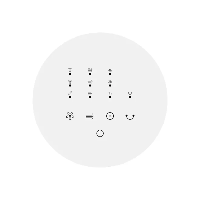 - Modny minimalistyczny design, matowe wykończenie w czystej bieli Cyfrowy panel kontrolny z diodą LED informującą o działaniu Smukły pilot zdalnego sterowania.