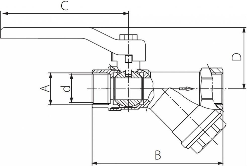 Zawór kulowy wodny z dławikiem i filtrem skośnym