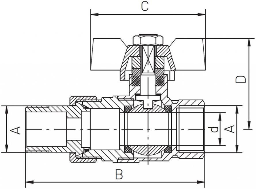 Zawór kulowy wodny ze śrubunkiem, z dławikiem, nakrętno-wkrętny, chrom