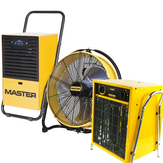 - Zestaw MASTER do osuszania po zalaniu – osuszacz DH 26, nagrzewnica B 9 IT i wentylator DF 20 P. Przepływ powietrza 6600 m³/h, 9 kW mocy, 27 l/24h osuszania. Skuteczna walka z wilgocią i tynkami. Gwarancja 36 miesięcy!