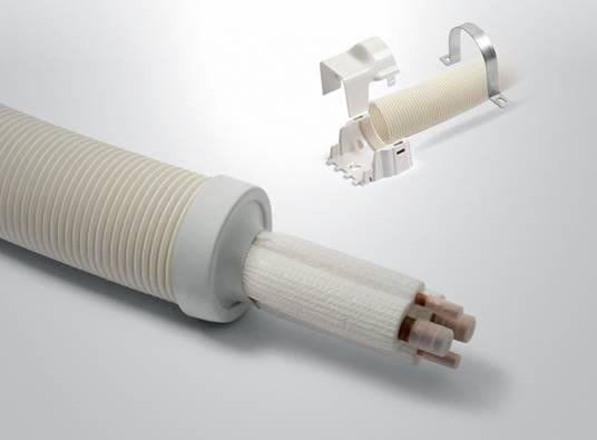 Zestaw instalacyjny do koryt instalacyjnych IPDT80, umożliwia poprowadzenie dwóch przewodów 1 m elastyczną rurą. Pozwala rozwiązać skomplikowane problemy napotkane w trakcie instalacji, zapewniając przy tym zachowanie wysokiej estetyki. Miękkie plastikowe wieczko idealnie zakrywa miedź chłodniczą wychodzącą z jednostki zewnętrznej.