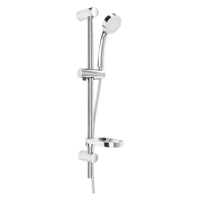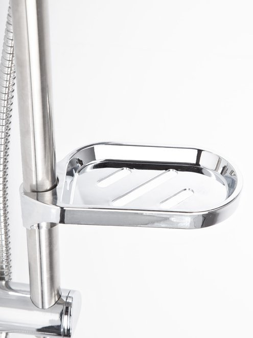 Zestaw natryskowy Petra chrom wykonany jest ze wzmocnionego plastiku. Przewidziana w nim została możliwość regulacji rozstawu za pomocą górnego uchwytu do 25 cm w dół drążka. Słuchawka okrągła z systemem antywapiennym generuje 3 rodzaje strumienia ((deszczowy, miękki, mieszany). Uchwyt słuchawki zaprojektowany został w typie „slider”. Mydelniczka umieszczona została na drążku i jest ruchoma, co pozwala dostosować ją do indywidualnych potrzeb. Chromowe wykończenie mają również drążek i mydelniczka. Wąż dołączony do zestawu ma długość 150 cm.