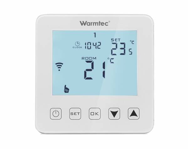 Warmtec PRT-01 to zaawansowany regulator temperatury, który umożliwia zdalne sterowanie poprzez urządzenia z systemem Android lub iOS, takie jak telefony lub tablety. Posiada intuicyjny, dotykowy wyświetlacz LCD o rozmiarze 3,0 cala. Ten programowalny regulator pozwala na precyzyjne ustawienie aż 6 bloków czasowych w ciągu dnia, zapewniając optymalną kontrolę temperatury.