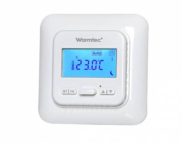 Programowalny regulator temperatury Warmtec T538 to zaawansowane urządzenie wyposażone w czytelny wyświetlacz LCD oraz odporność na wilgoć na poziomie IP21. Dzięki temu doskonale nadaje się do montażu wewnątrz łazienki. Ten innowacyjny regulator umożliwia programowanie od 4 do 6 zmian temperatury na dzień. Możliwe jest również skorzystanie z predefiniowanych programów, które ułatwiają regulację temperatury (poniżej wymienione).